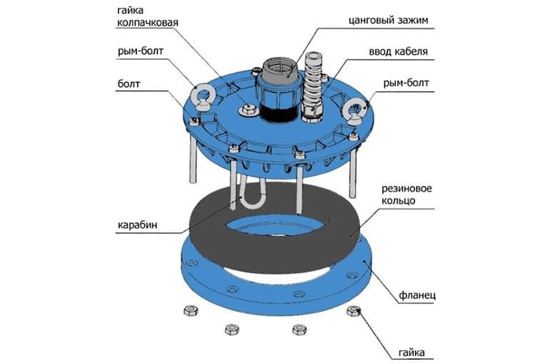 Для изготовления используется пластик. Данные приспособления помещаются в конец обсадной трубы. Обустройство без кессона проводится при помощи люка, крепления, резиновой прокладки, прижимного кольца. Два последних элемента погружаются в трубу. Верхняя часть остается на поверхности.