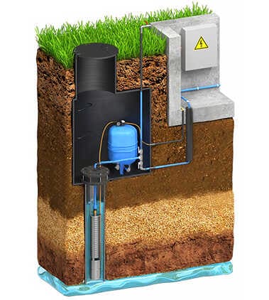 Самый надежный практичный подход к водоснабжению частного дома – это обустройство скважины с кессоном. Конструкция позволяет снабжать водой хорошего качества бесперебойно круглый год, поскольку кессон служит надежной защитой от промерзания оборудования и неблагоприятных воздействий внешней среды.