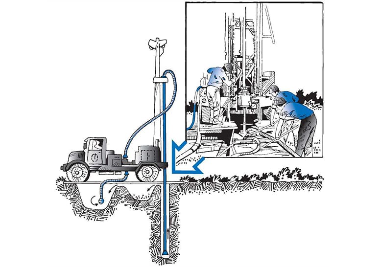 Бурение на воду под ключ — разрушение горных пород до водоносного горизонта и сооружение колонны для подъема воды на поверхность. Бурение под ключ чаще всего применяется при организации автономного водоснабжения на участке. Выполняется с применением специализированной техники и квалифицированного персонала.